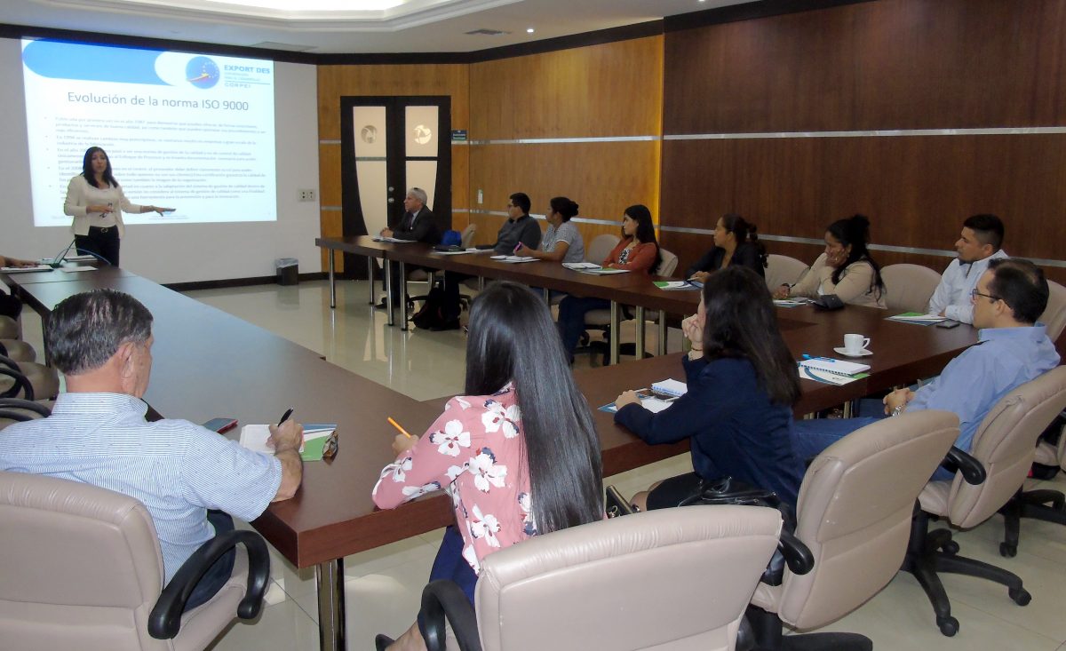 Quito, agosto, 2018. El taller “ISO 9001:2015 Normas sobre Gestión de Calidad” se realizó en Quito y Guayaquil, con el objetivo de brindar una capacitación técnica a los beneficiarios del Proyecto Export Des. El evento, en el que participaron aproximadamente 30 personas, dio a conocer los procesos, la satisfacción del cliente y los recursos necesarios para conseguir eficiencia y calidad en las empresas.